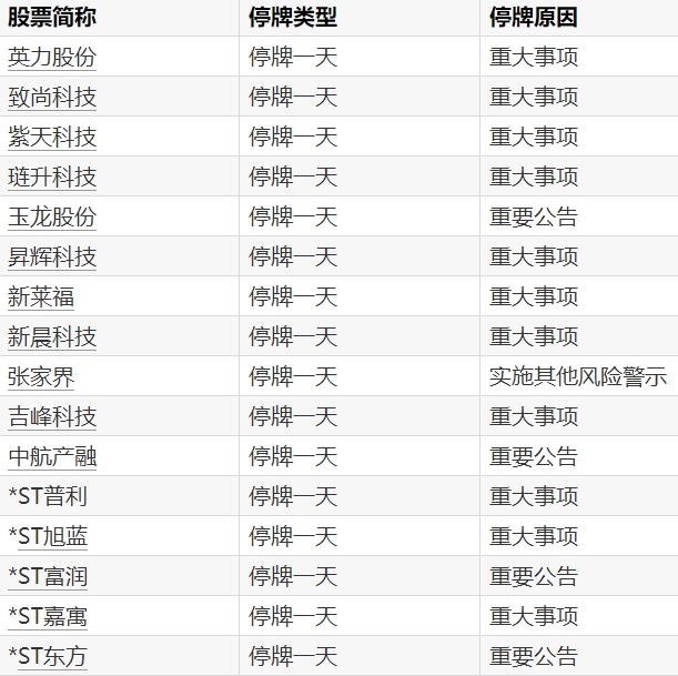 A股停牌提示:16股今日停牌真正的实盘配资平台查询