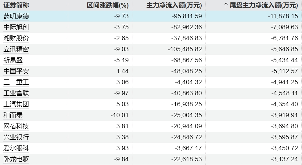 主力今日尾盘买卖这些个股