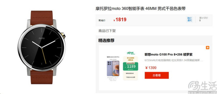 初代MOTO 360智能手表,至今依然可以在联想官网找到购买页面