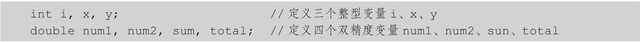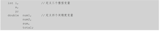 也可以同时定义多个相同类型的变量,每个变量名之间用逗号分开,如: