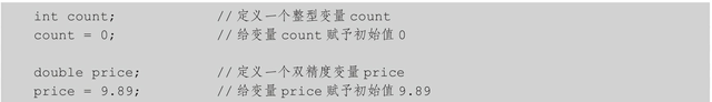 变量初始化是指一个变量定义后第一次赋予的值,即初始值。常见的变量初始化是由赋值语句完成的,例如: