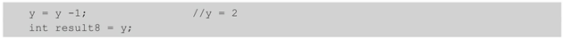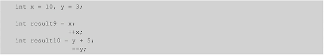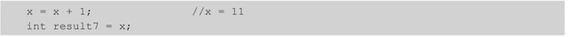 int result = x++ + ++y - --x + 1;