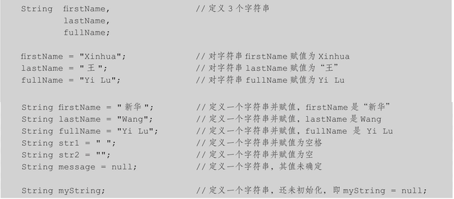我们在编程时经常使用字符串。在Java中,字符串实际上是对象,由字符串类String来创建。但为了使用方便,也为了和在C语言中使用字符串的概念一致,Java对字符串操作,尤其是对字符串的定义,提供了一套和基本类型变量相同的方法,例如: