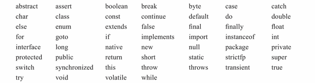 随着本书的介绍,大多数关键字都会被解释并在程序中使用。有些关键字,如const、goto,在Java语言中已不再使用,但仍属关键字。