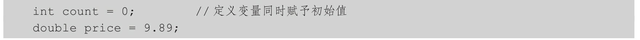 也可以同时定义多个同一类型的变量,并赋予初始值,例如: