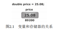从图2.1可以看出,变量名price代表一个双精度数值25.08的存储地址。更确切地说,它代表8个字节存储器的开始地址,即89200。