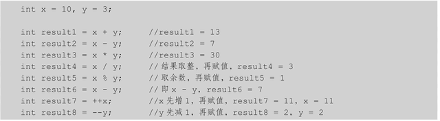 另外注意,在算术表达式中使用的变量必须是定义过的变量,否则Java编译器将给出语法错误信息。