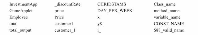 Java合法标识符的命名规则如下。