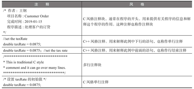 Java注释的第二种是C++风格,或称为单行注释。它以“//”注释标记为开始,接着是注释,直到本行结尾。如果需要多行注释,每行都必须以“//”开始。表2.2列举了这两种注释风格的常见例子。