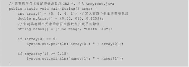 我们不可能在程序中创建成千上万个变量或者对象。数组可以很好地解决对大量数据处理的问题。本节简单讨论数组,本书将在以后章节中更深入地讨论数组及其应用。